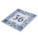 "custom house number plate", "personalized house no plaque", "personal customized text sign", "monochrome fancy ceramic tile", "antique dutch folk art frame", "blue and white vintage classic", "traditional delft monochromatic flowers", "postage mailing post mail address", "floral country home signage", "apartment villa cottage border"