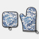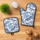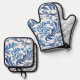 Blue & White Floral Design | Chinoiserie Pattern Vintage Oven Mitt & Pot Holder Set