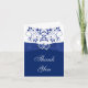 Blue, White Floral, Hearts Wedding Thank You Card