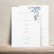 Chic and elegant blue hydrangea wedding program enclosure card, featuring a welcome message, full program details and a custom 'thank you' message. The design features a set of chic dusty blue font against a white background. Stylish, romantic, elegant with youthful undertones, this design adds just that special something to your big day. Personalize this one-of-a-kind design to make it yours.