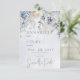 This design features a soft blue watercolor wash background with a top cascade of pale periwinkle blue and white flowers. This design is part of the Blue & White Floral Modern Wedding Suite Collection created by Simply Farmhouse Press.