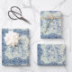 Blue & White Floral Victorian Majolica Antique Wrapping Paper Sheet