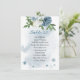 romantic blue and white flowers with some pretty green leaves wedding seating chart card.