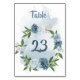 blue & white flowers greenery wreath table number