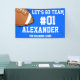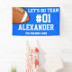 Cheer on your team with this Blue White Football Team Banner. Personalize with your athlete's number and name, and the name of the team. You can even change the message. Show off your team spirit this summer.