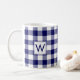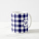 Blue White Gingham Plaid Pattern with Monogram Coffee Mug