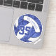 This blue and white volleyball sticker features a floral kaleidoscopic pattern blended with the volleyball's blue panels and an artsy abstract swirl pattern blended with the white panels - her name jersey number are customizable - by katz_d_zynes