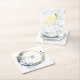 Blue White Gold Floral Monogram Boho Wedding Square Paper Coaster