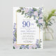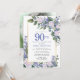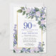 Blue White Gold Floral Photo 90th Birthday Invitation