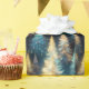 Accentuating the trees, stars in matching hues of blue, pink, and gold light are scattered throughout the design, creating a twinkling effect reminiscent of a winter night sky. This adds an extra touch of magic and joy, ensuring each gift stands out with a radiant holiday glow.