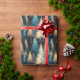 Blue White Gold Trees Modern Christmas Wrapping Paper