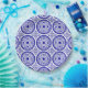 An original delft-inspired faux tile pattern in blue and white with ornate scrolls.on the edges and a centre with a gothic pattern of crosses and leaves.