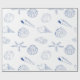 Blue White Hand Drawn Sea Shells Beach Summer Wrapping Paper