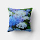 Blue and White Hydrangea Flowers-A beautiful patch of hydrangea flowers in full bloom cover the pillow from edge to edge. Most of the flowers are blue and white but you get glimpses of the purple around the edges. The flowers are on both sides of the pillow.