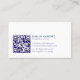 The elegant, simple, and minimalistic immigration attorney business card design features personalized blue and white typography on a dark blue and white background. QR Code.