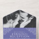 Blue purple on white hand-drawn growing leaf botanical art add your own couples photo evening wedding reception all-in-one invitation. Personalize this detachable reply wedding invitation with your own wedding event details, a photo of the happy couple, and add your RSVP with guest meal options to your detachable replies and a QR code for replies or to direct your guests to further information or gift registry . Simple leaf design corners and circling your own monogram initials on the outside flap. Other colours and matching wedding items available. © Original leaf hand drawing and design by artist and designer Sarah Trett for www.mylittleedenweddings.com on Zazzle.