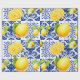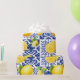 Blue White Lemon Tile Pattern Mediterranean Citrus Wrapping Paper