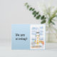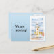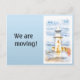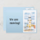Change of address / moving announcement / new address card with the image of a beautiful white lighthouse on a sea blue background, and text that says "We're moving." Add your new address to the back.
