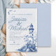 Blue White Lighthouse Coastal Beach Wedding Invitation