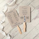These fans were exactly as pictured. The quality is great. Perfect favor for a wedding!...I will make assembly a little easier by using a hot glue gun and finish them off with a ribbon. Beautifully printed. Crisp and clear text.