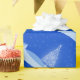 Blue White Merry Christmas Tree Pattern with Stars Gift Wrapping Paper