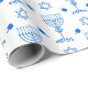 Blue White Minimalist Menorah David Star Hanukkah Wrapping Paper