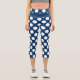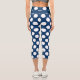 Blue White Modern Trendy Polka Dot Pattern Capri Leggings
