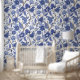 Blue & White Mughal Garden Floral Pattern Wallpaper