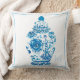 Blue White Pattern Monogrammed Elegant Ginger Jar Throw Pillow