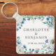Blue White Peony Floral Custom Spring Wedding Keychain