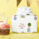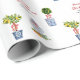 Watercolor handprinted personalized Merry Christmas wrapping paper with Blue and white pottery and topiary.