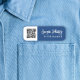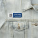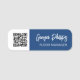 Stylish blue and white QR code name tag with the name in a white brush script.