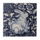 Blue White Rabbit Family Floral Chinoiserie Navy Tile