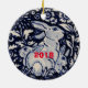 Blue & White Rabbit Mom & Babies Date Custom Ceramic Ornament