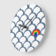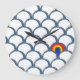 Blue & White Sketch Scallop Pattern & Rainbow Large Clock