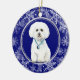 Blue White Snowflake Maltese Dog Christmas Ceramic Ornament