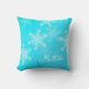 Blue White Snowflakes Minimalist Christmas Name Throw Pillow