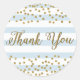 Blue White Stripe Gold Confetti Party Thank You Classic Round Sticker