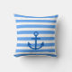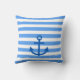 Blue & White Stripe Pattern with Anchor Throw Pillow
