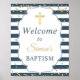 Blue White Stripes Gold Glitter Baptism Welcome Poster