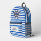 Blue White Stripes, Helm, Boat Name Printed Backpack
