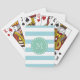 Blue White Stripes Pattern, Mint Green Monogram Playing Cards