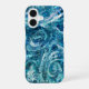 Blue White Teal Sea Waves Splash Abstraction iPhone 16 Case