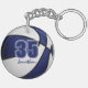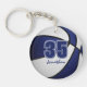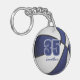 This cool basketball themed acrylic keychain for boys or girls features the realistic image of a basketball that has recolored alternating blue and white panels upon which you can easily customize the athlete's name and jersey number on the front and back - by katz_d_zynes