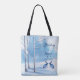 Winter woodland landscape watercolor trees and rabbits wedding welcome bag. This blue and white winter personalized wedding bag is perfect for a winter wedding. This winter trees wedding welcome bag features a beautiful watercolor snowy landscape with trees, snow, and rabbits. This personalized winter wedding totebag has a rustic outdoor feel. It's perfect for a wedding in a forest, meadow or mountain recreation area in the winter.