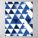 This design features a modern geometric pattern composed of interlocking triangles in three main colours dark blue, light blue, and white. The triangles create a rhythmic, repeating layout that forms a dynamic visual texture. Some sections include artistic details such as halftone dot patterns and paint splatter effects, adding energy and depth to the clean geometric structure. The combination of sharp shapes and organic textures gives the design a bold yet creative appearance, suitable for backgrounds, textiles, or modern graphic layouts.