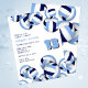 This cute volleyball themed party invitation for a birthday or team party features clusters of light blue, navy blue and white volleyballs at the top and bottom edges on the front and a single cluster covering the back of the invitation - customize the party details on a white background - by katz_d_zynes