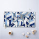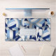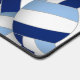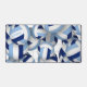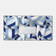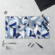 This cool volleyball themed desk mat features a pattern of varied size dark blue, light blue and white volleyballs turned every which way overlying a volleyball net detail accent graphic - background is customizable white - personalize the athlete's name at the upper left corner on one of the volleyballs in the pattern - by katz_d_zynes