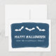 Trendy and fun Watercolor Bats Halloween Postcard with a blue watercolor look background and three whimsical little white bats. This simple and modern card can be easily customized with your own Halloween greeting. Find more customization options by clicking Customize It.
