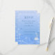 Beautiful winter wedding RSVP design with a blue background and white snow flakes and establishments around the edges. This design comes on many ready made template products to meet all your wedding stationery needs.